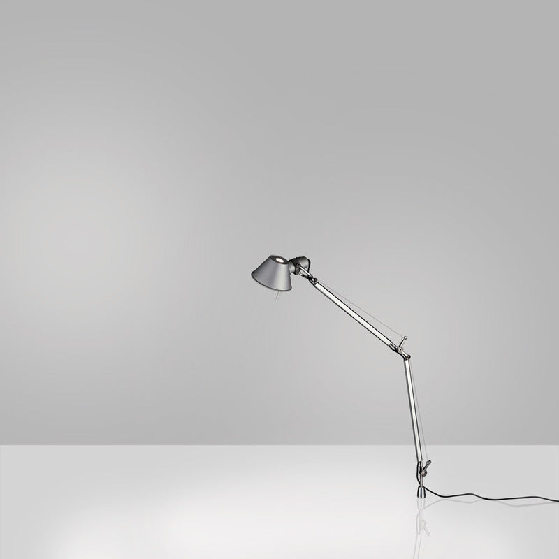 Table standing luminaires for adjustable, direct task, LED, fluorescent, halogen or Standard Bulb lighting. Features Tolomeo Collection Country of Origin: Italy Fully adjustable, articulated arm structure Tiltable and rotatable diffuser Central cover made of thermoplastic material, allowing two independent lamp units to be fitted Interchangeable plug options accommodate most electrical outlets for global diversity (for LED version) LED version is tested in accordance with IES LM-79-08 Light distribution: Direct On/off switch on cord for INC version Dimmer switch on cord for LED version cULus Listed Dry Rated: Suitable for indoor use Available in Table Base, Clamp or Inset Pivot model Available in Standard Bulb or LED lamp type Available in Aluminum, Black or White finish