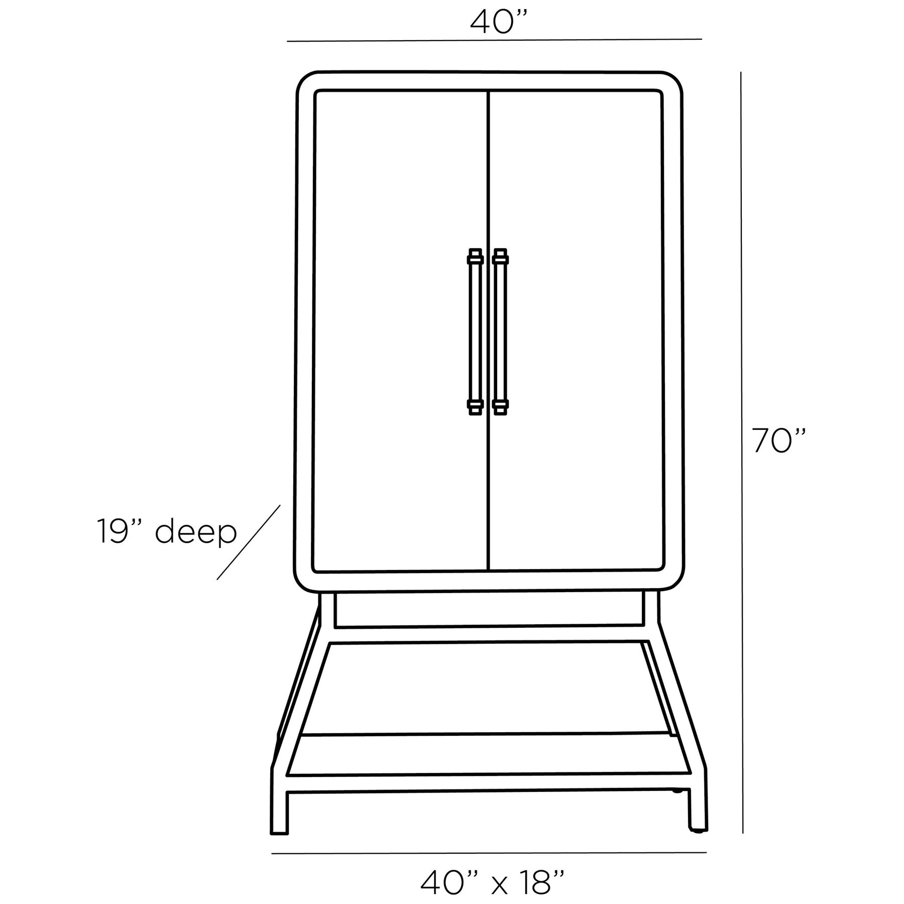 Dimensions: 40"W x 40" L x 70"H x 19"D
