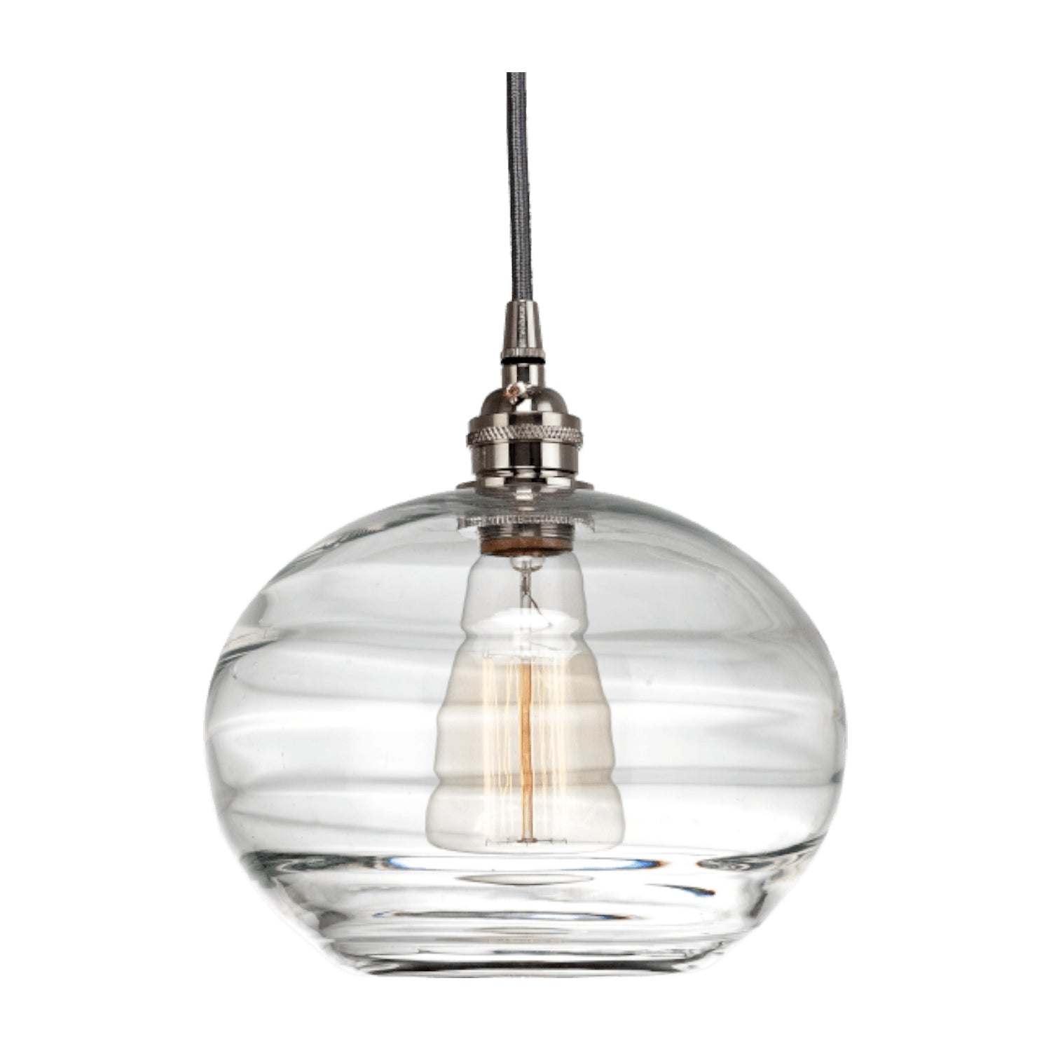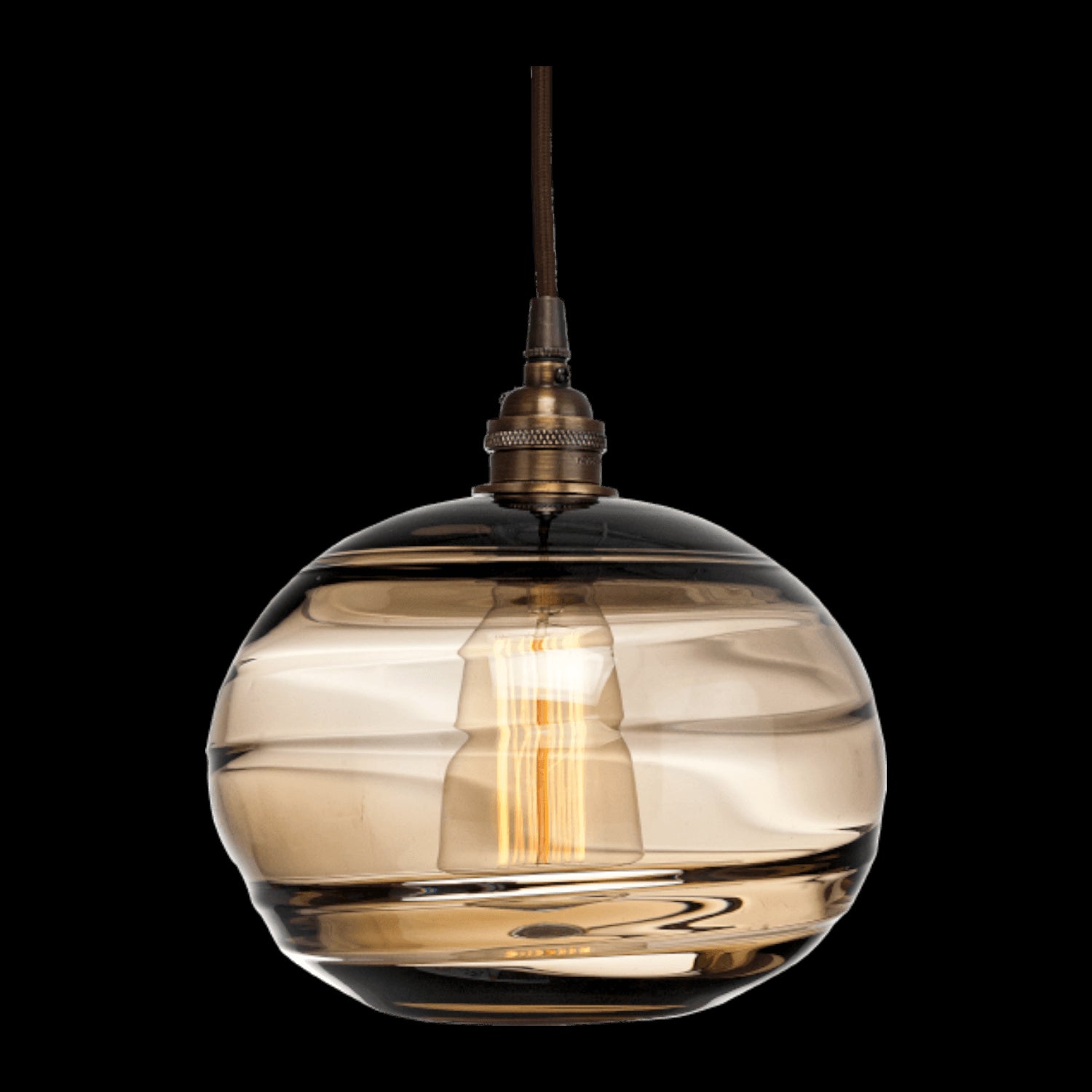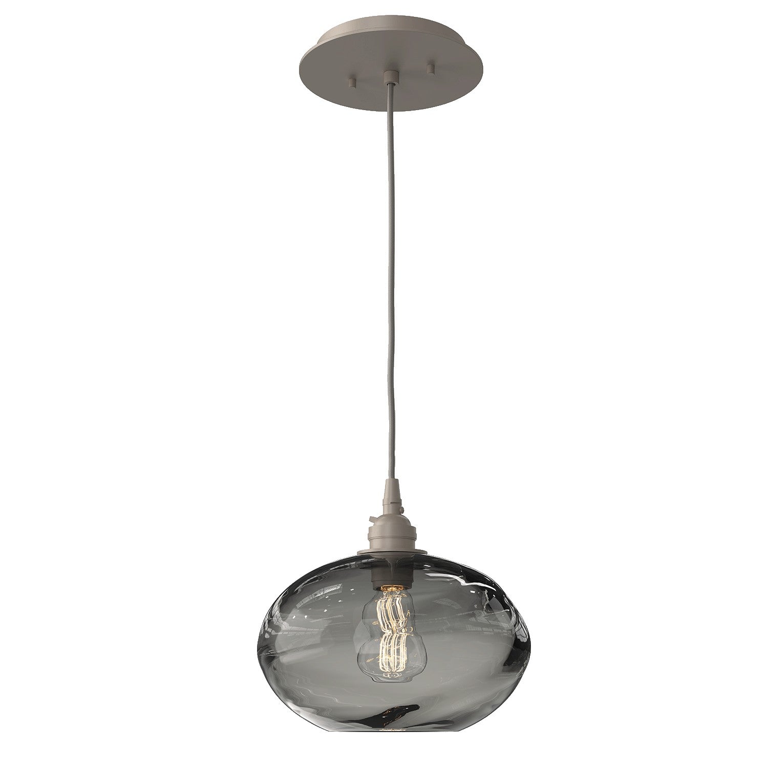 Coppa Pendant-Metallic Beige Silver-Optic Blown Glass - Amber-Silver Cloth Braided Cord-E26