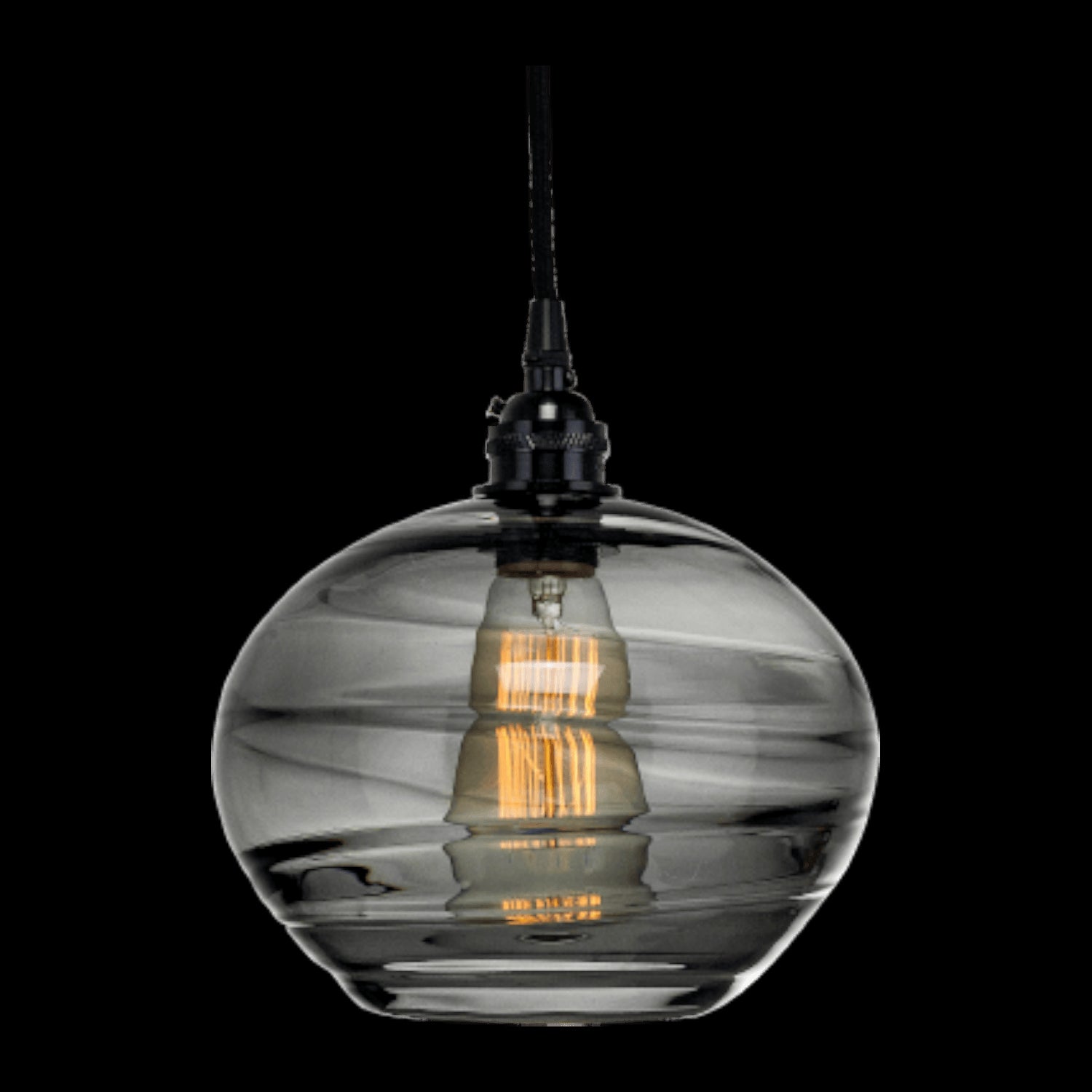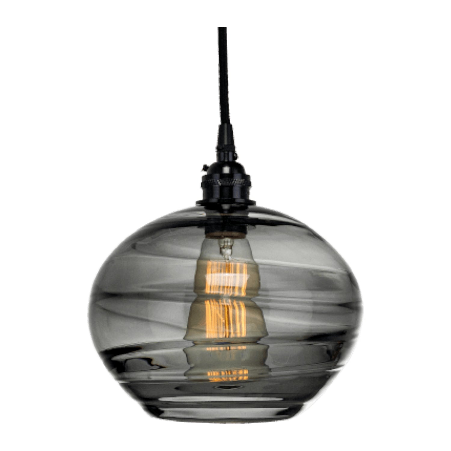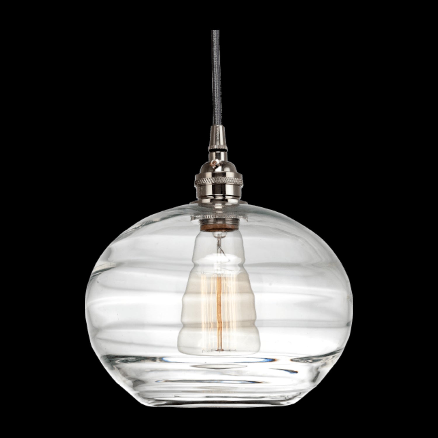 Coppa Pendant-Metallic Beige Silver-Optic Blown Glass - Amber-Silver Cloth Braided Cord-E26