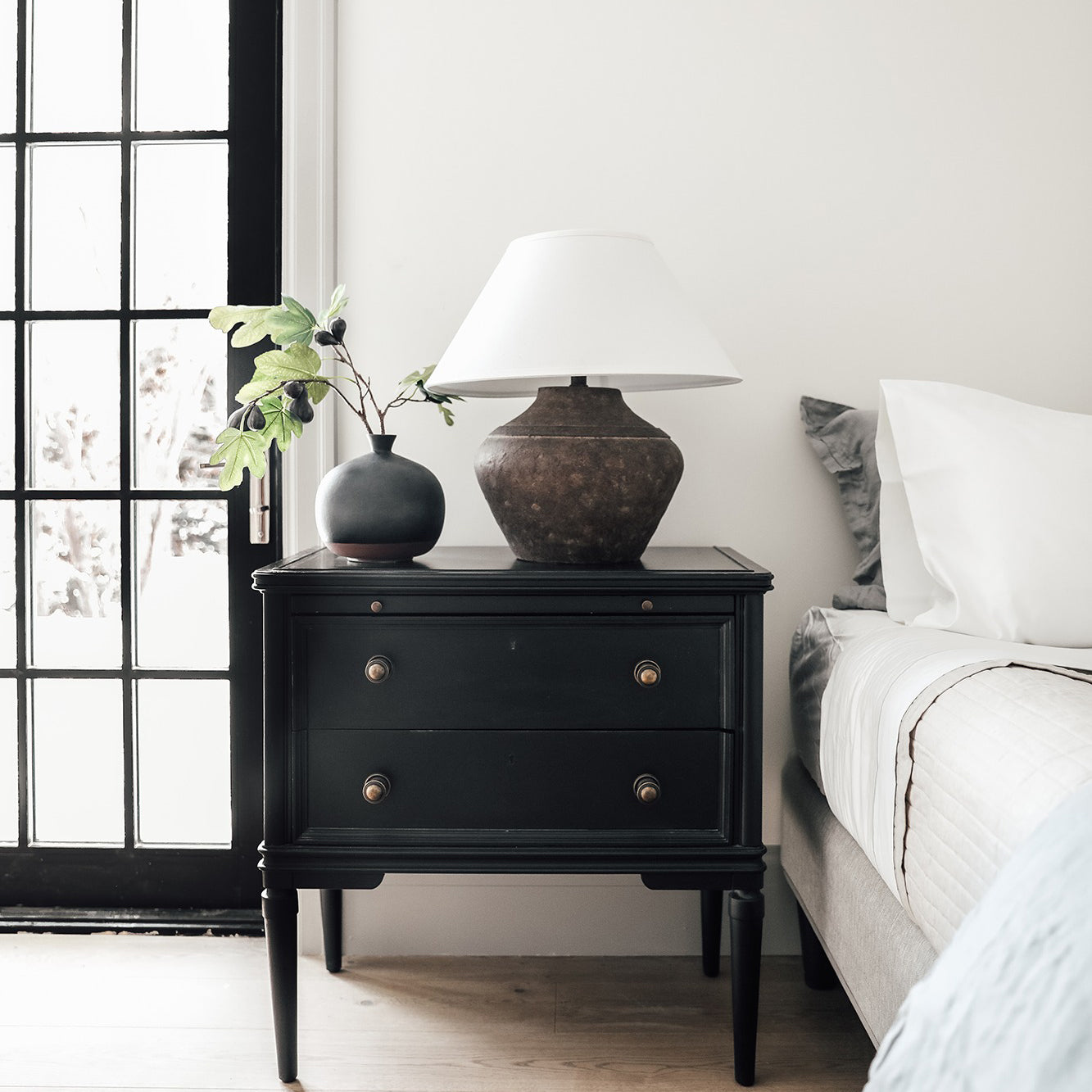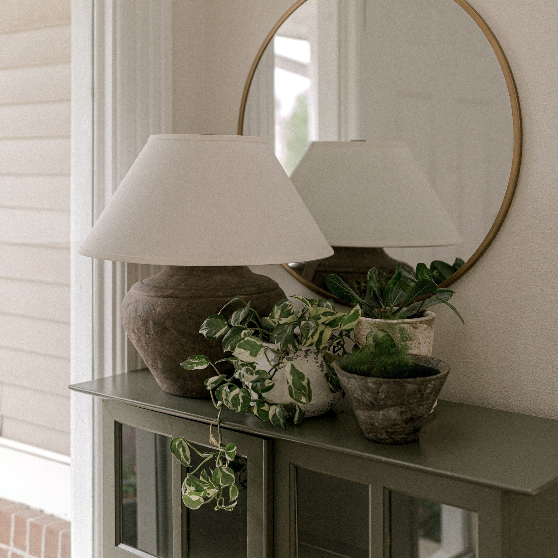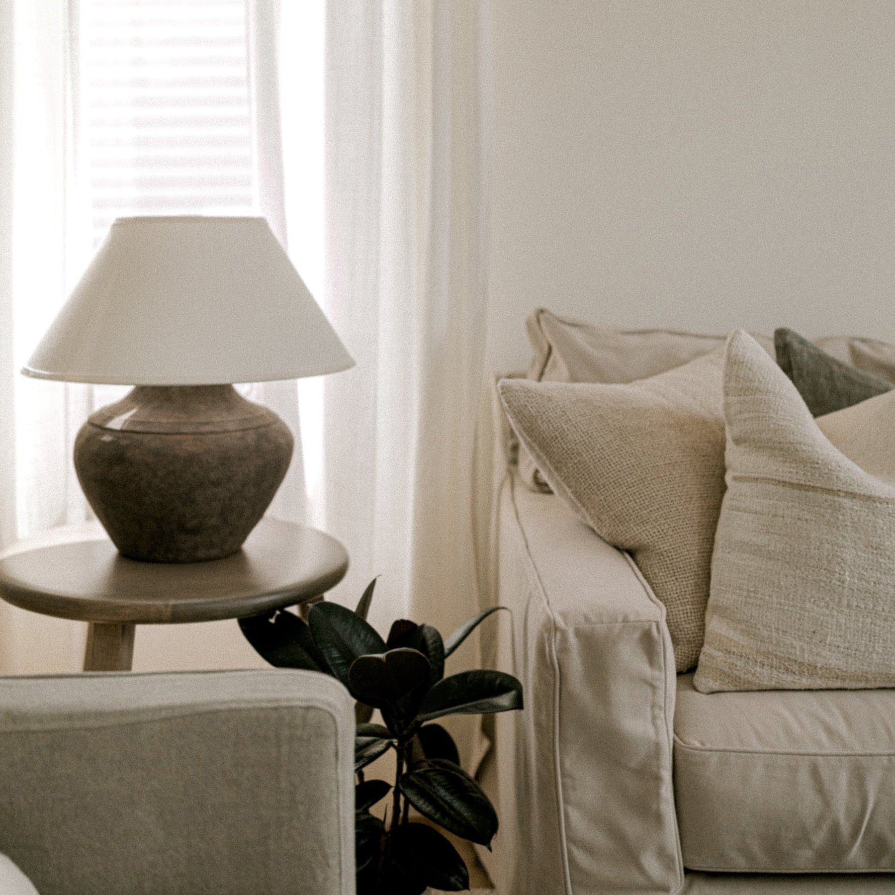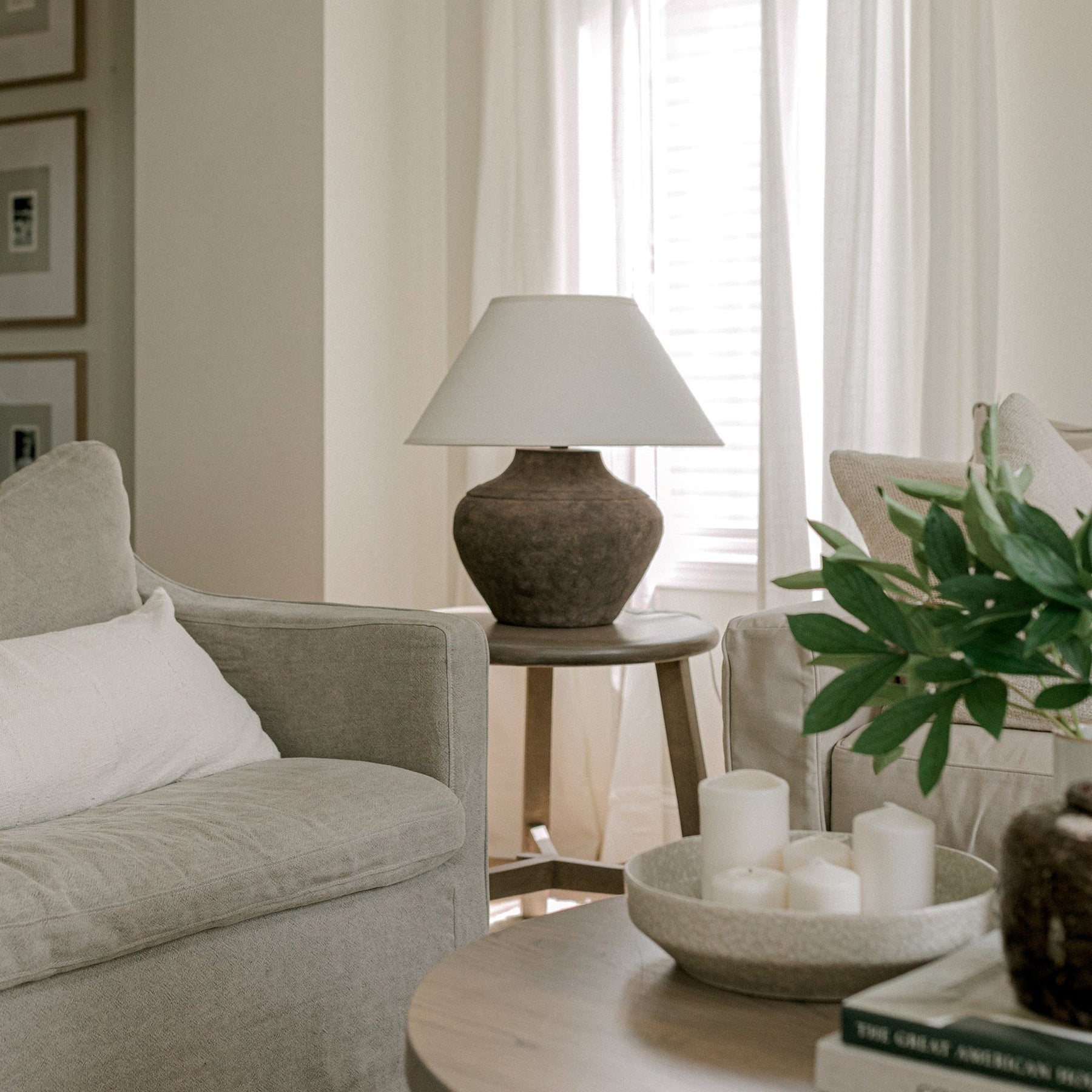 The Calabria Table Lamp in Sienna brings a warm, approachable glow to relaxed living spaces. Light is softened with off white diffusers and expressed through a 1-light configuration, creating depth without visual weight. Well-suited for spaces that value material integrity and balanced illumination.