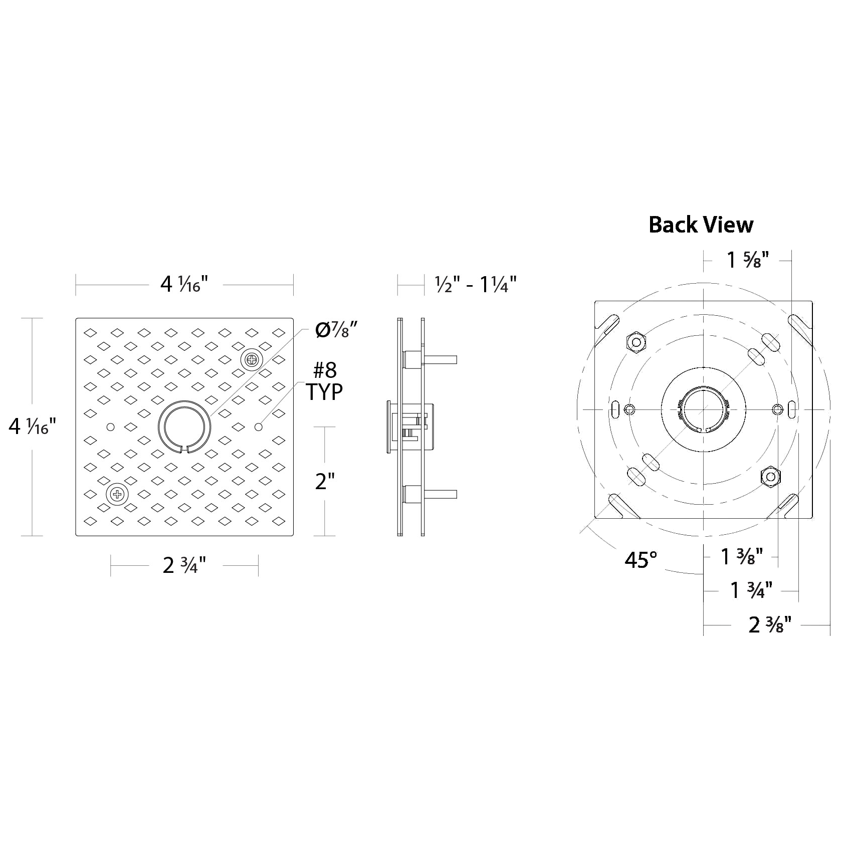 Dimensions: 4.06" W x 4.06" L x 1.25"H x 4.06"D